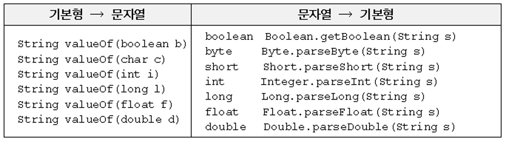 - 문자열과 기본형 간의 변환